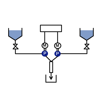 因该种泵无脉动且定量性卓越,并可按泵的转数比例始终保持一定的流速,所以可以采用该种泵进行在线配比来代替以往依赖混合桶槽式的乳化、混合、合成。是需要进行细微流量控制的微反应工序上不可缺少的泵。